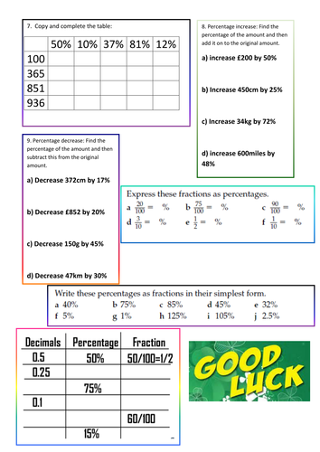 Fractions, Decimals And Percentages Worksheet. | Teaching Resources from www.tes.com